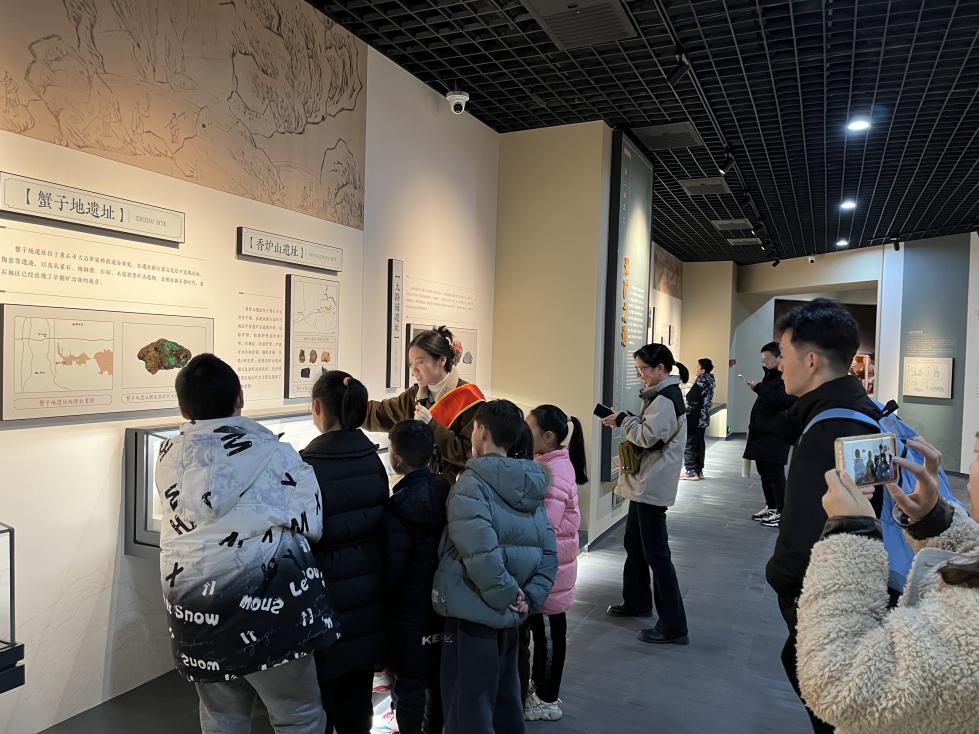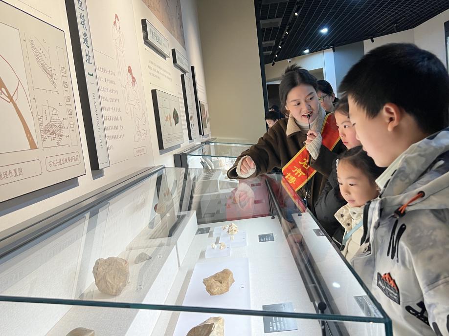 讲解员带领大家参观2号展厅,内容涵盖黄石文脉的源头、古人寻矿的方法、矿井开采技术等多个方面,展厅变身历史课堂,让学生们深入了解黄石丰富的矿冶文化底蕴。